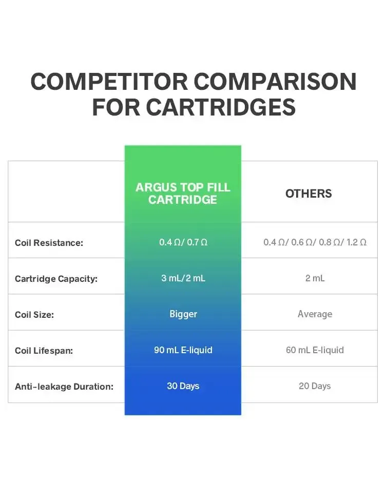 - 1* ARGUS Top Fill Cartridge 0.4 Ω (3 mL),