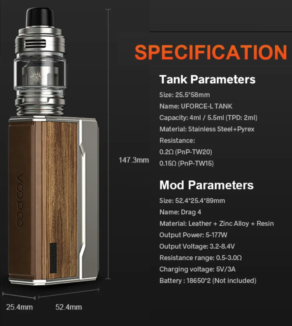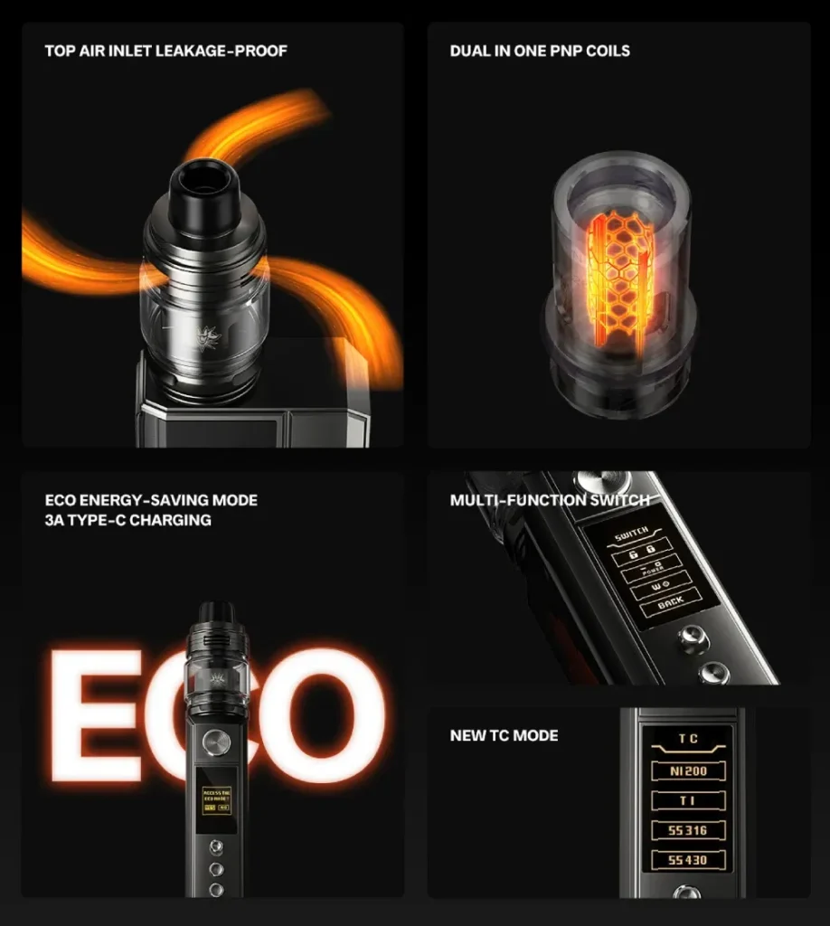 Drag 4 includes new PnP Coil 0.15 Ω/0.2 Ω with Dual In One Tech in the package to bring you richer taste, denser cloud and longer lifespan. It is compatible with all PnP Coils. Just get it!