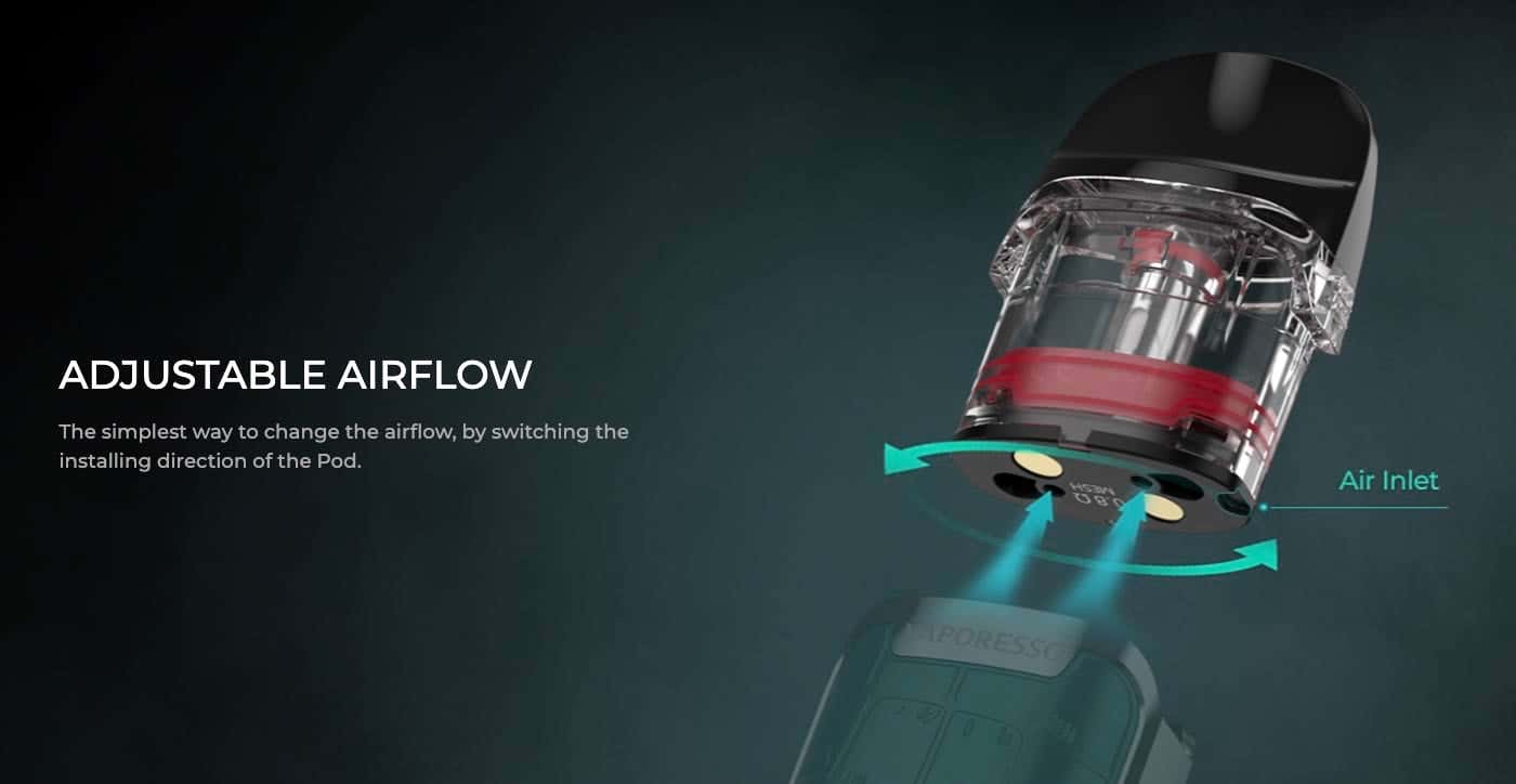 The ability to adjust the airflow on the Vaporesso Luxe Q and QS pod devices is all in the pod design. Featuring air inlet holes on the base makes airflow adjustability as easy as simply switching the pod’s position, delivering either a loose RDTL experience or a tighter, more restrictive MTL vape.