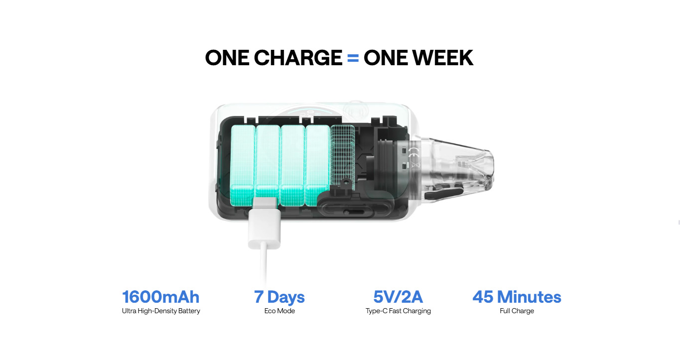 Featuring an HD smart touch screen and a 1600mAh battery, it is upgraded with a 5-digit counter and intelligent puff diary tracking for up to 30 days. Stylish, powerful-enjoy everything in touch!
