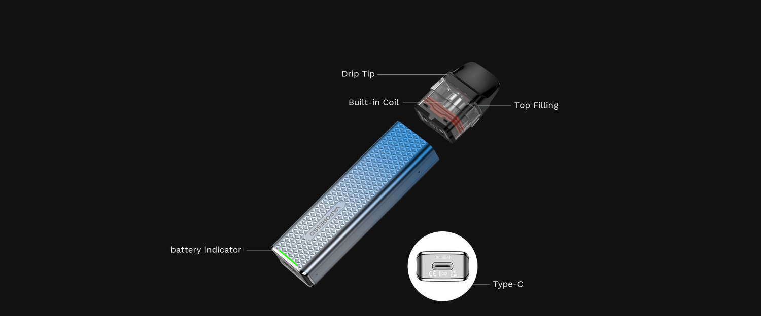 | POD Capacity 2ml | Coil Resistance 0.6Ω Mesh POD | Battery Capacity 1000mAh |