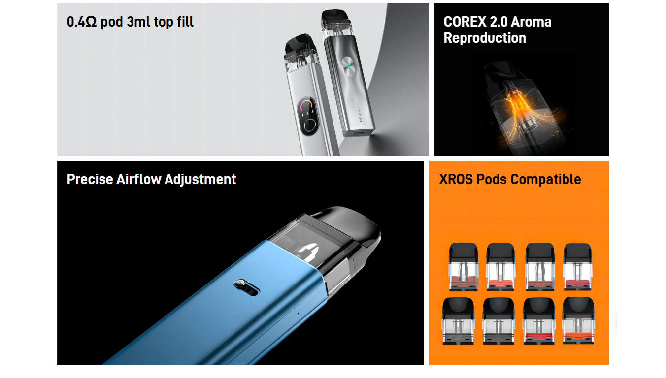 XROS 4 showcases COREX 2.0 technology and feature a 0.4Ω pod